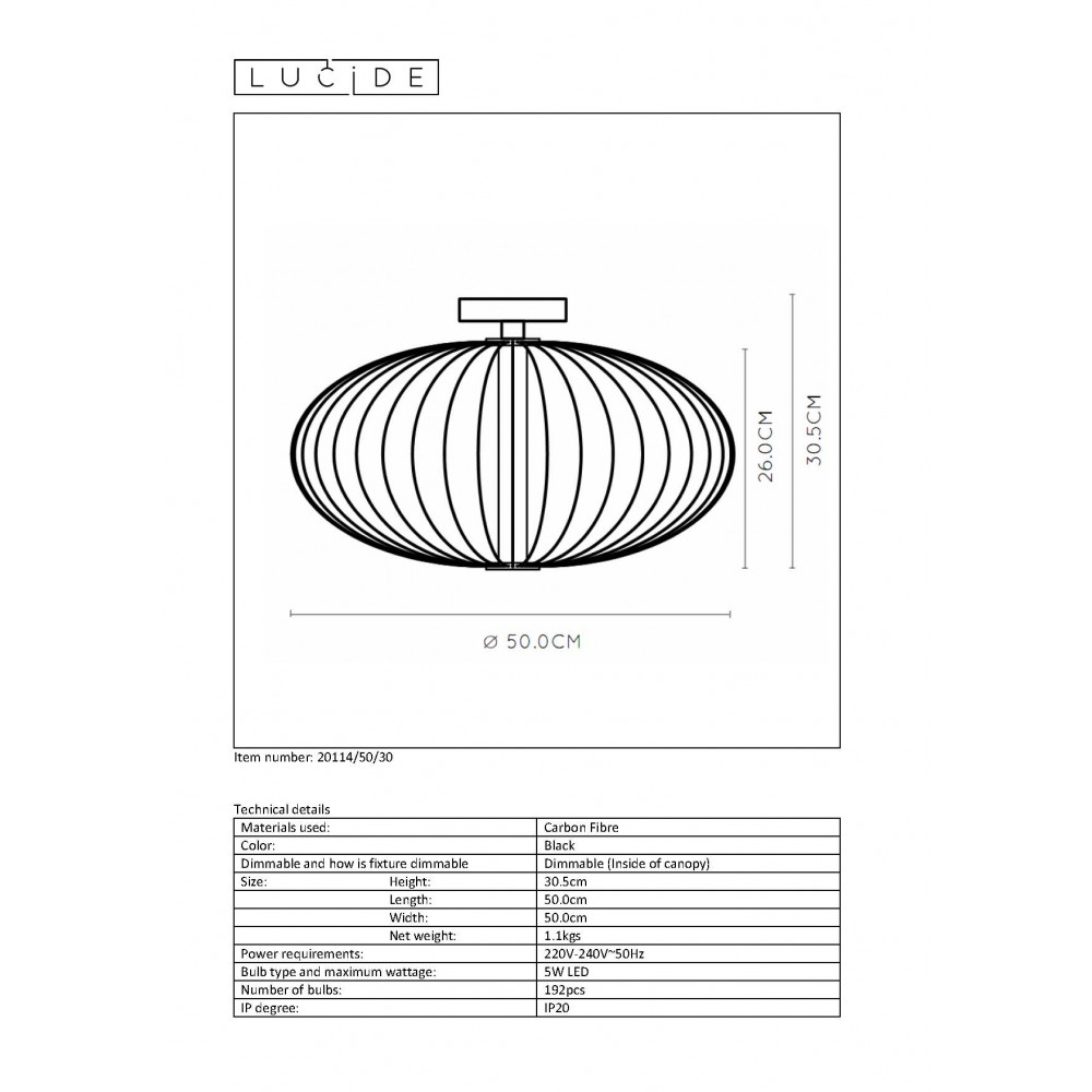 CARBONY - Stropné svietidlo - LED 5W 2700K - Čierna