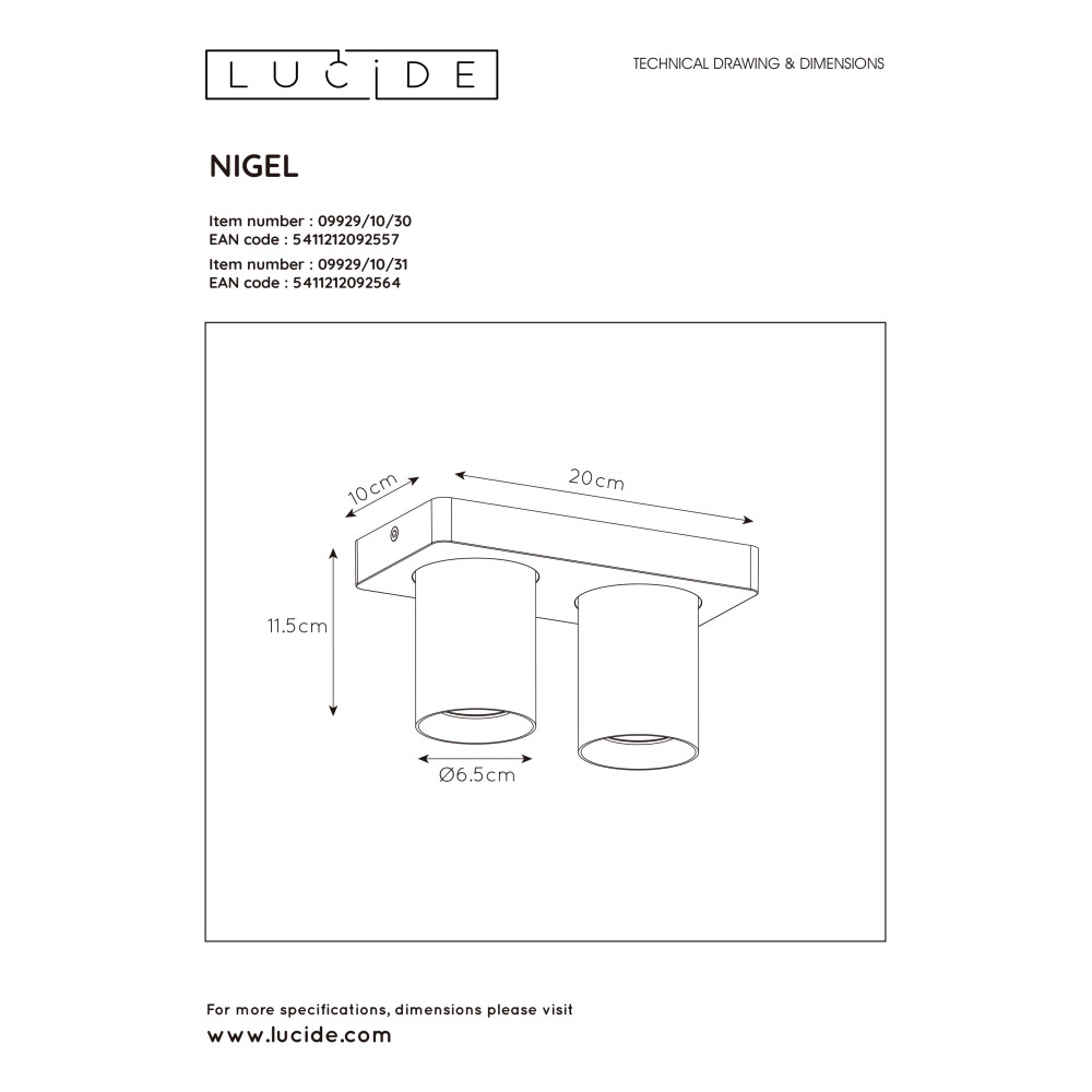 NIGEL Ceiling spotlight 2xGU10/5W Black