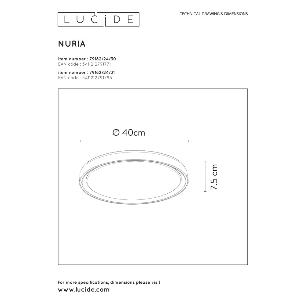 NURIA - Flush ceiling light - Ø 40 cm - LED Dim. - 1x24W 2700K - 3 StepDim - Black