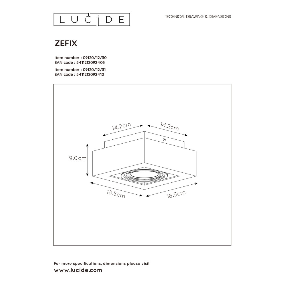 ZEFIX Ceiling Spotlight 1x Gu10/12W DTW White