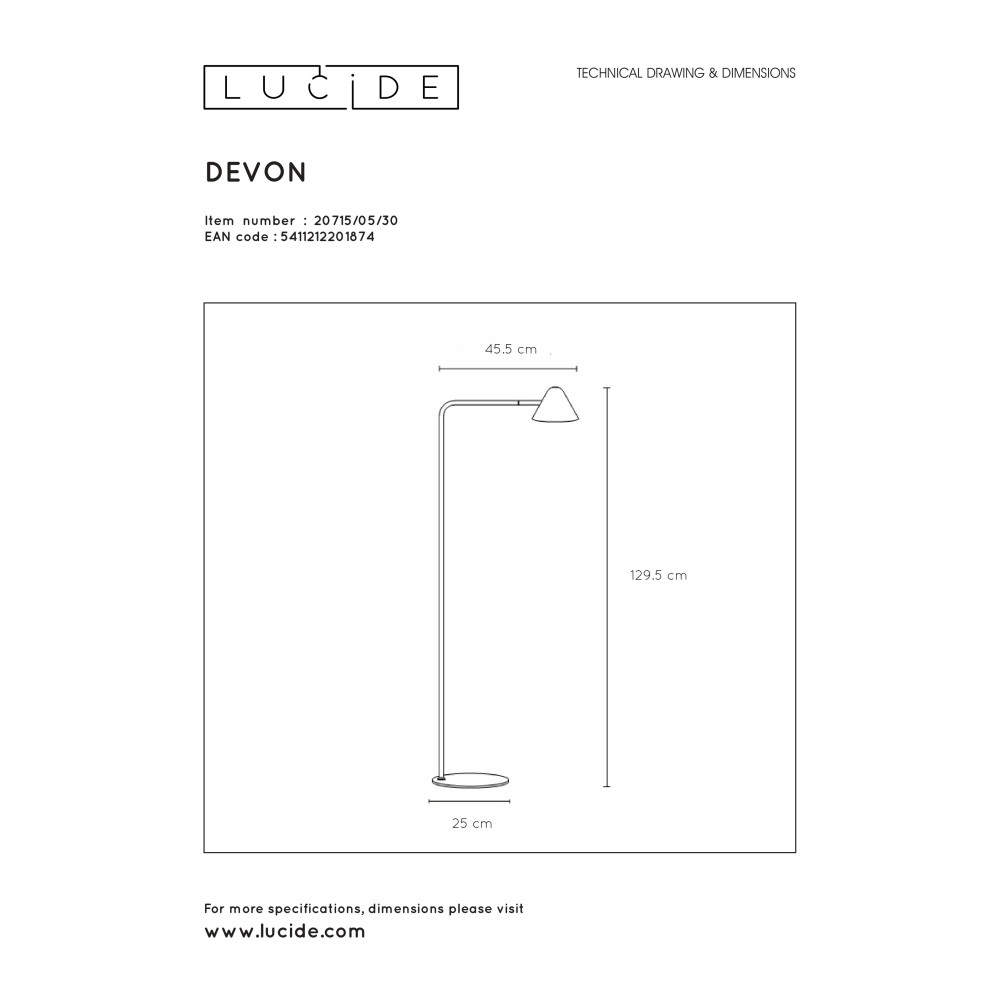 DEVON - Stojaca lampa - 5W / LED H129,5m - čierna