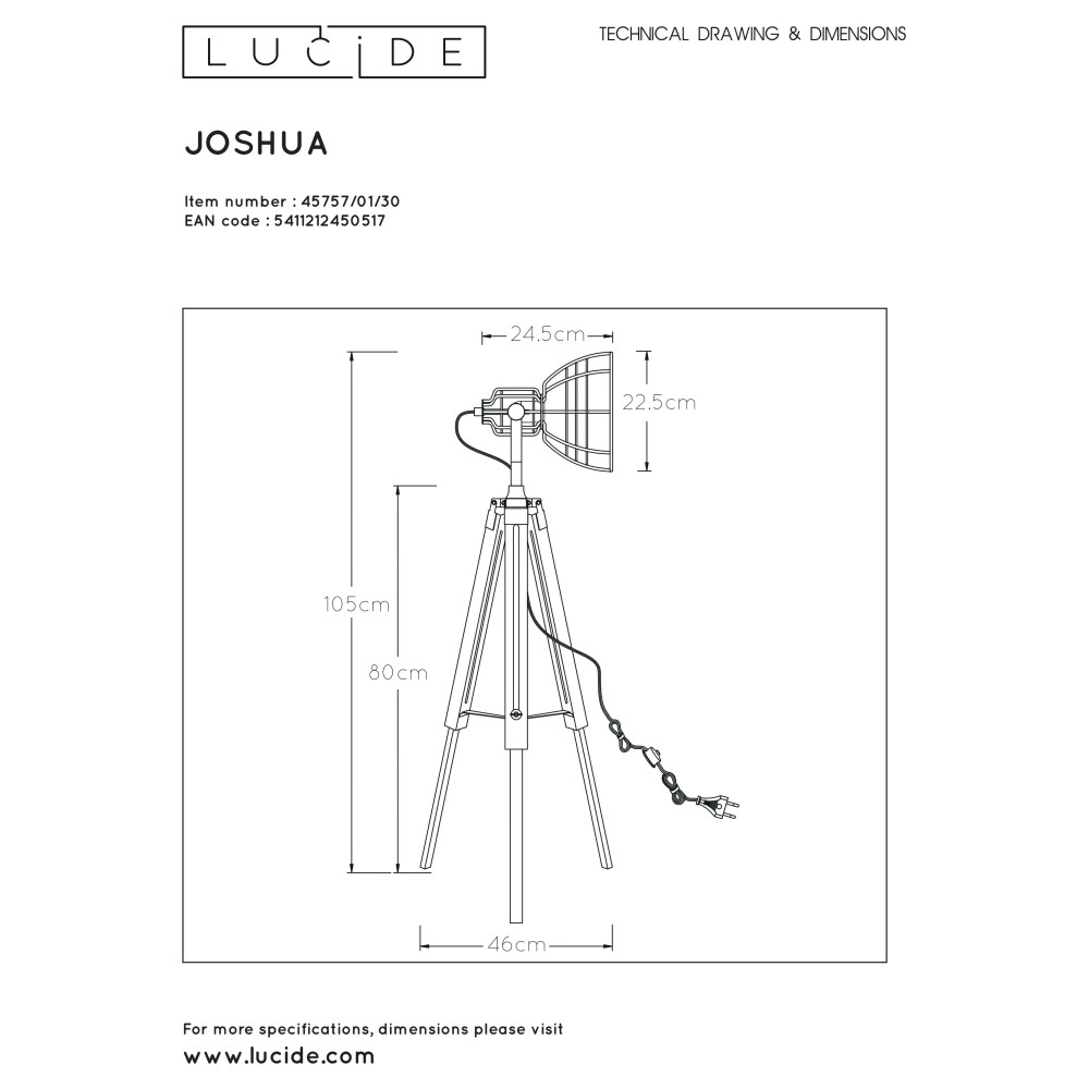 JOSHUA - Stojaca lampa - E27 H104cm - čierna