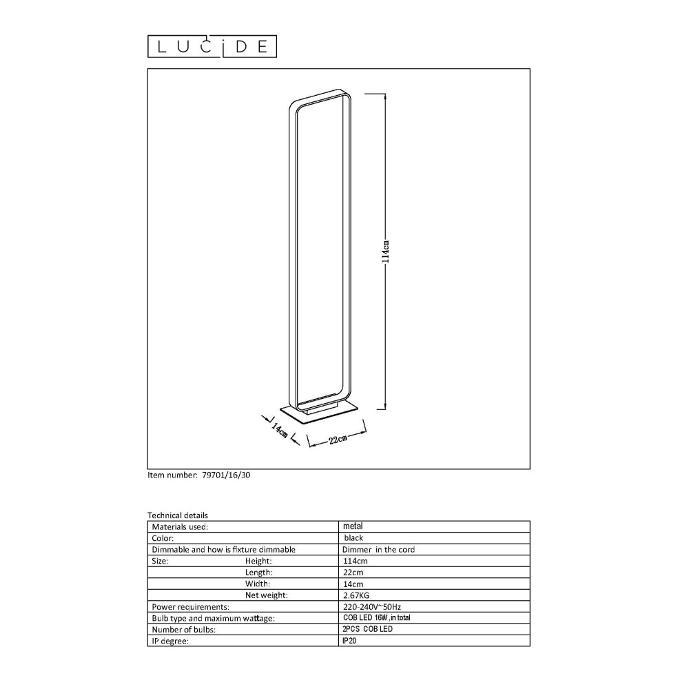 MIKA - Stojaca lampa - LED 2x8W 22/14/114cm - čierna