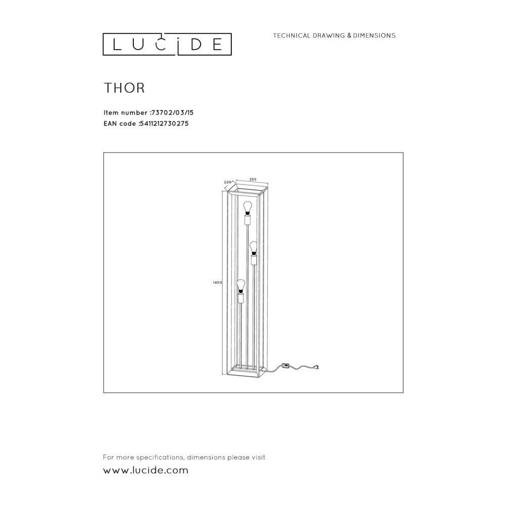 THOR - Stojaca lampa - 3xE27 H140cm - šedá