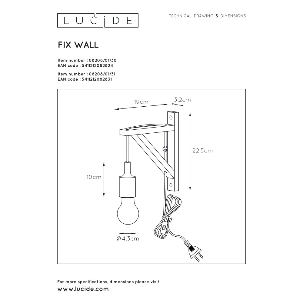 FIX - Nástenné svietidlo - E27 excl. H22cm - drevo/čierna