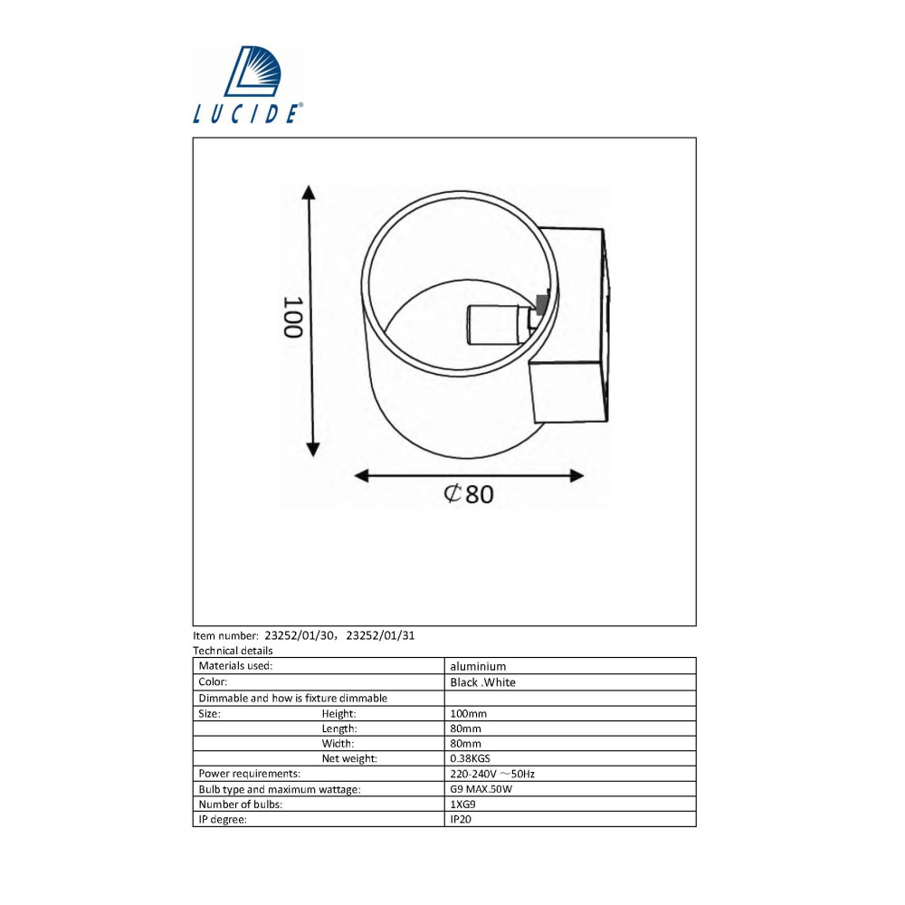 XERA - Nástenné svietidlo - Round 1xG9 D8 H10 W10 cm
