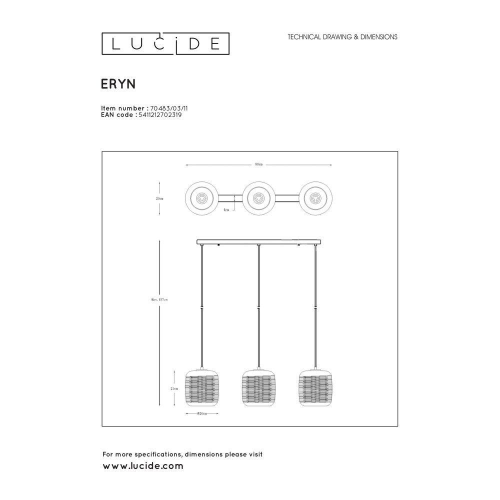 ERYN - Závesné svietidlo - 3x E27 88/20/145cm cm