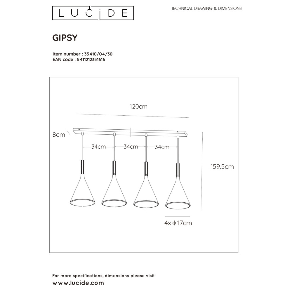 GIPSY - Závesné svietidlo - 4x E27 - čierna