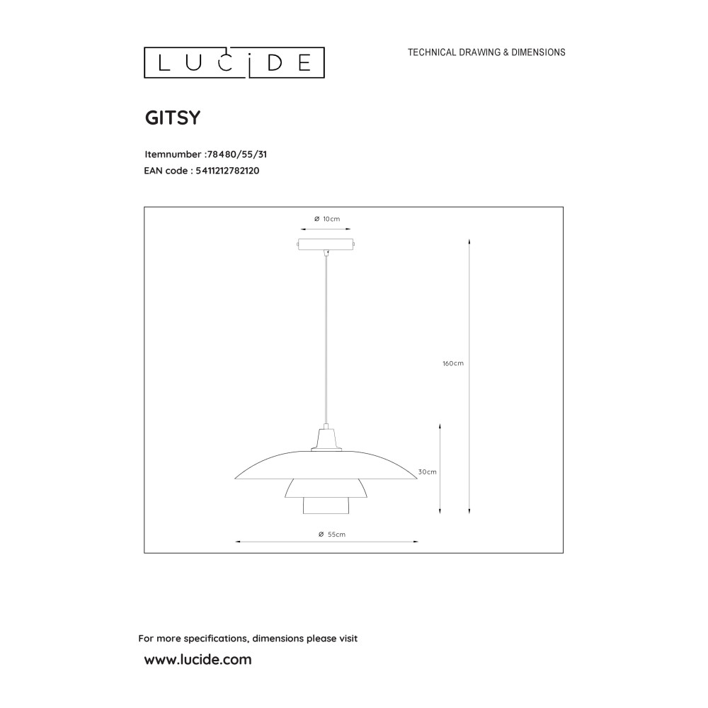 GITSY - Závesné svietidlo - E27 / 55cm - biela