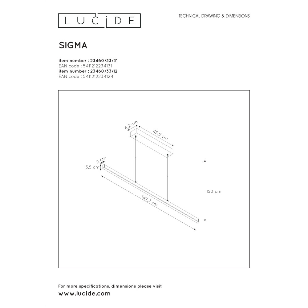 SIGMA - Závesné svietidlo - LED 33W L147,5cm 2700K - biela