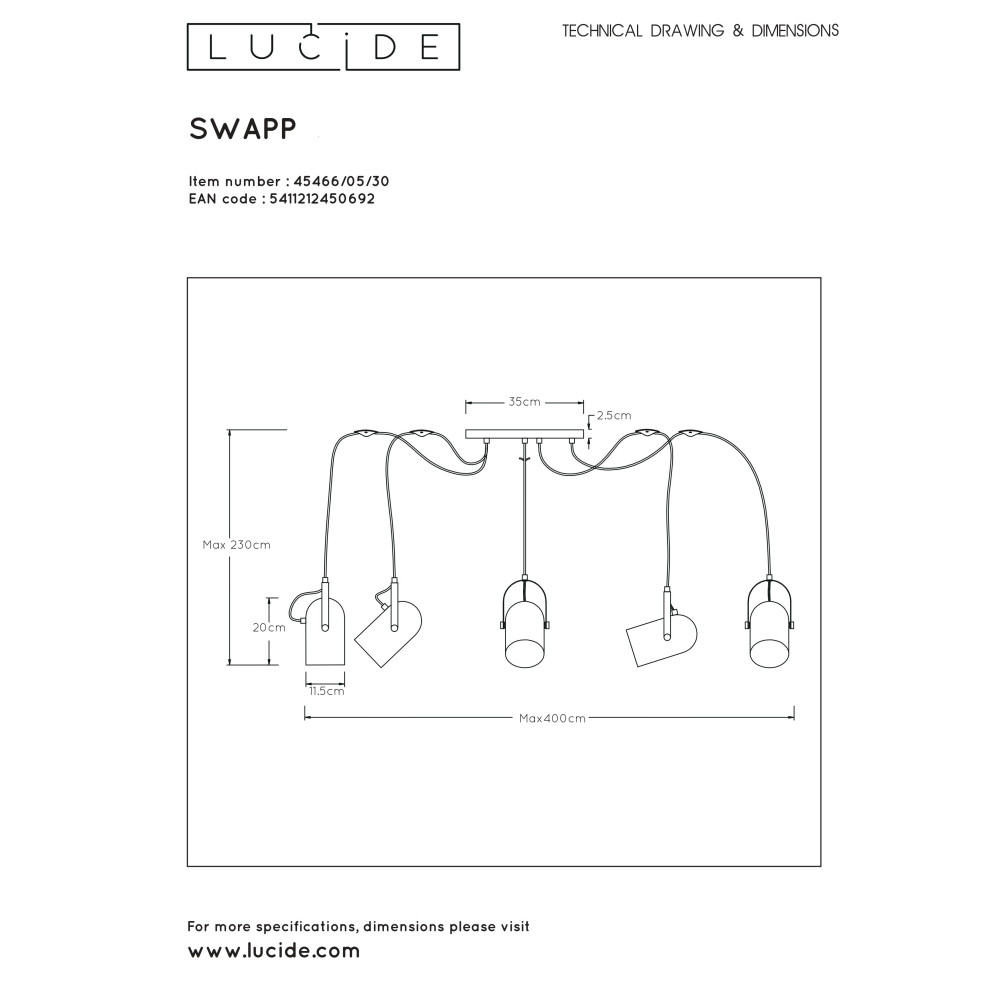SWAPP - Závesné svietidlo - 5xE27/40W - čierna
