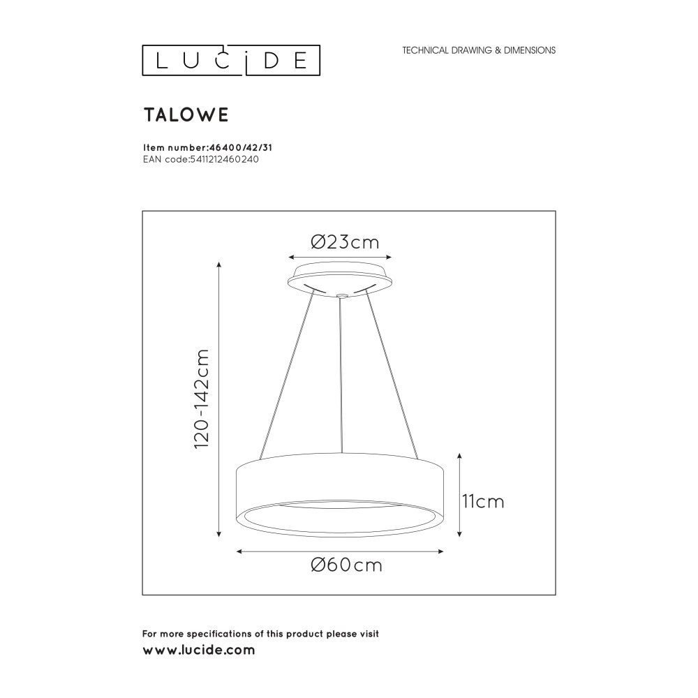 TALOWE LED - Závesné svietidlo - Ø 60 cm - LED Dim. - 1x39W 3000K - biela