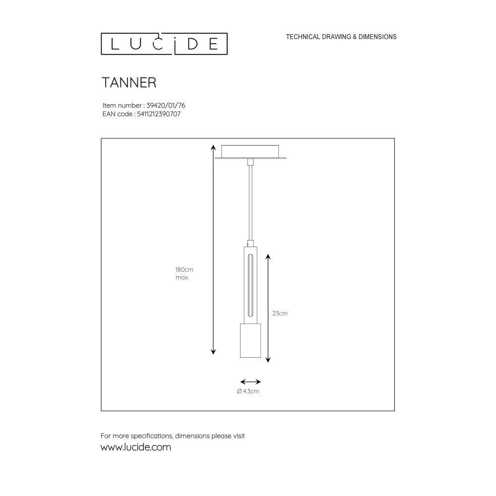 TANNER Pendant 1x E27 60W Black/Hout