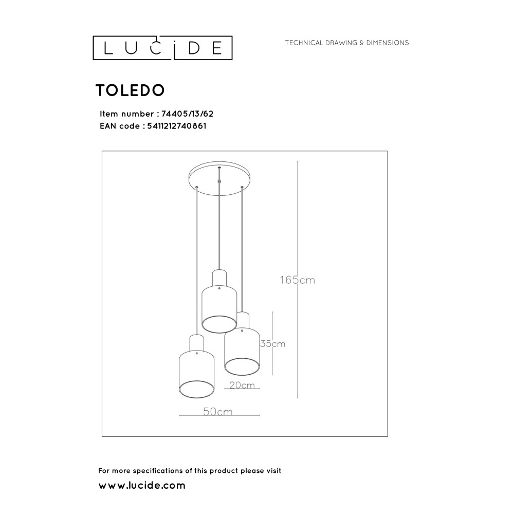 TOLEDO Pendant 3xE27/60W Copper/Glass Amber