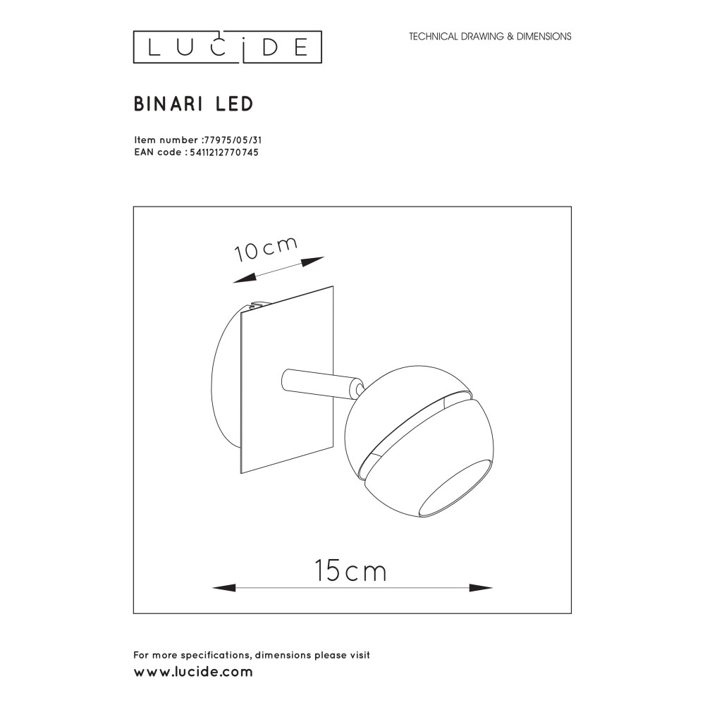 BINARI - Stropný reflektor - LED 5W L10 W14.5 H13cm - biela