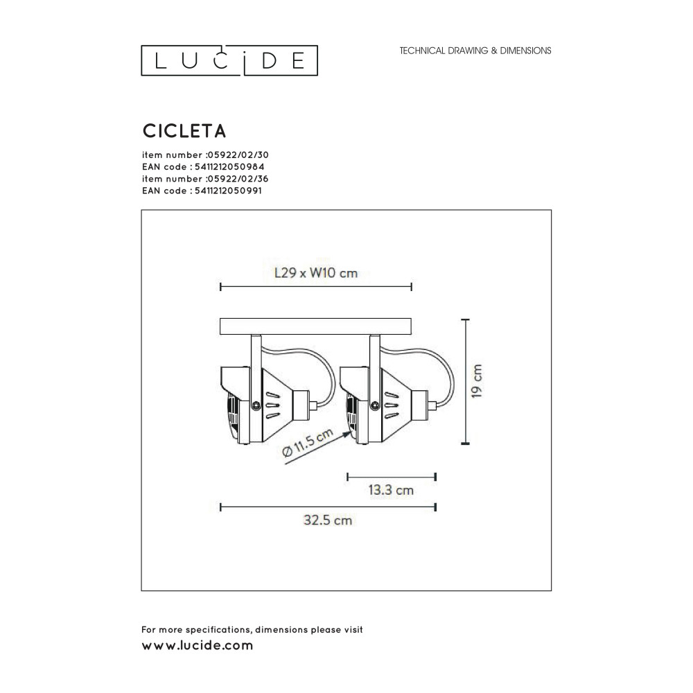 CICLETA - Stropné svietidlo - 2xGu10/35W - čierna