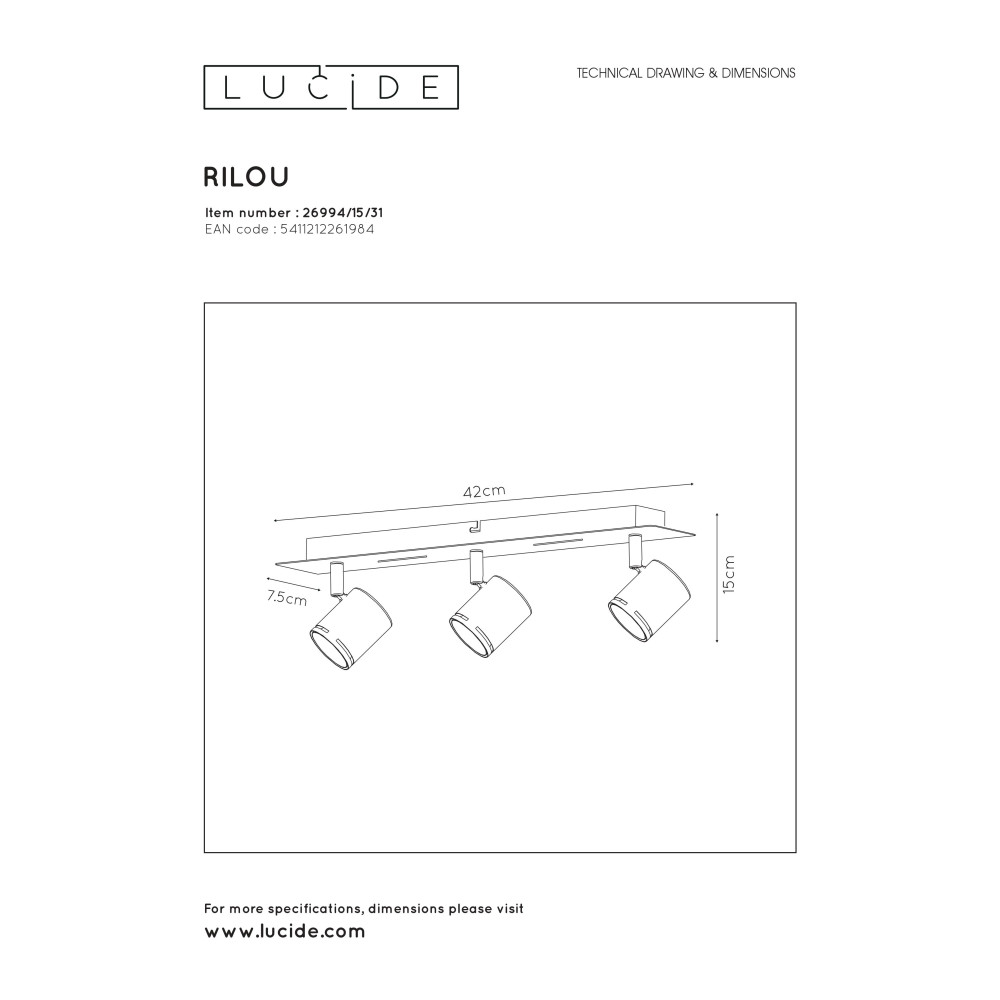 RILOU - Stropný reflektor - LED 3x5W (49000/05/31) Biely