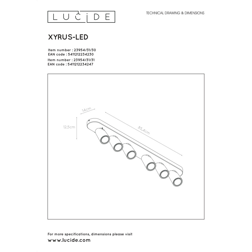 XYRUS - Stropné svietidlo - 6xGU10/5W incl. DTW W14 L84 H12.5cm - Čierna (old 23954/30/30)